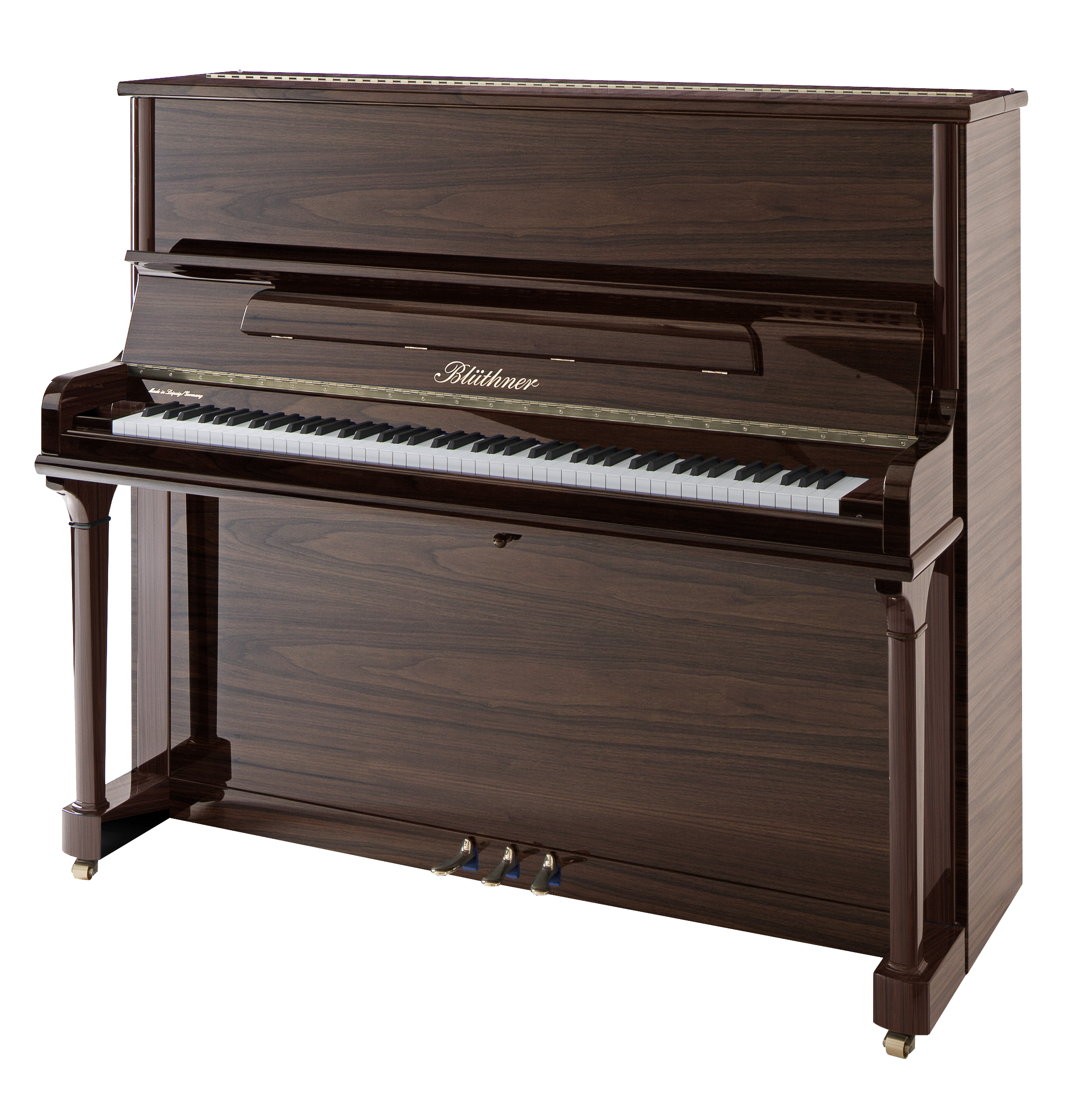 Od 1853 roku instrumenty Bluthner produkowane są wyłącznie w Leipzig w Niemczech i po dziś dzień rzemieślnicy i przedsiębiorcy rodziny Bluthner kontynuują zarządzanie firmą i osobiście nadzorują produkcję każdego instrumentu noszącego ich nazwisko. Kontynuują oni dziedzictwo założyciela Juliusa Bluthnera, aby tworzyć najlepsze instrumenty w świecie. To właśnie w tej fabryce już od ponad 170 lat zachowywane są najwyższe standardy precyzji oraz rzemiosła. Potwierdzeniem tego jest podpis właścicieli fabryki znajdujący się na każdym dnie rezonansowym.